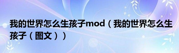 导读 大家好,精选小综来为大家解答以上的问题。我的世界怎么生孩子mod,我的世界怎么生孩子,图文很多人还不知道,现在让我们一起来看看吧!查