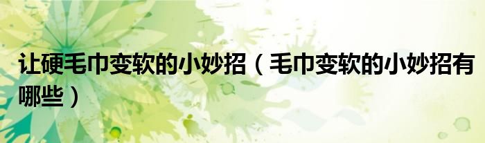 导读 大家好,精选小综来为大家解答以上的问题。让硬毛巾变软的小妙招,毛巾变软的小妙招有哪些很多人还不知道,现在让我们一起来看看吧!1 醋洗