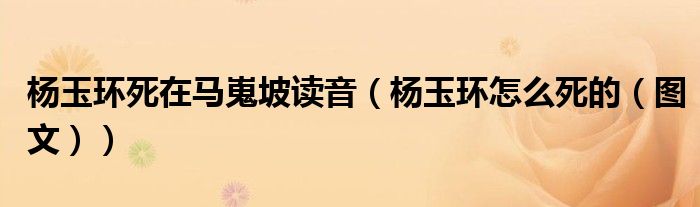 导读 大家好,精选小综来为大家解答以上的问题。杨玉环死在马嵬坡读音,杨玉环怎么死的,图文很多人还不知道,现在让我们一起来看看吧!查看视频