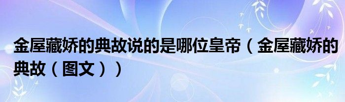 导读 大家好,精选小综来为大家解答以上的问题。金屋藏娇的典故说的是哪位皇帝,金屋藏娇的典故,图文很多人还不知道,现在让我们一起来看看吧!