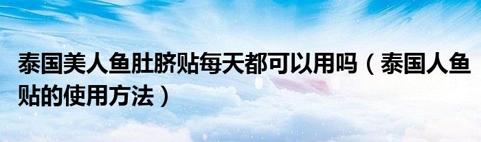 大家好,精选小综来为大家解答以上的问题。泰国美人鱼肚脐贴每天都可以用吗,泰国人鱼贴的使用方法很多人还不知道,现在让我们一起来看看吧!