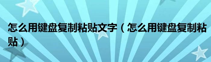 导读 大家好,精选小综来为大家解答以上的问题。怎么用键盘复制粘贴文字,怎么用键盘复制粘贴很多人还不知道,现在让我们一起来看看吧!如果要复