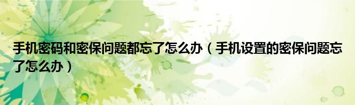 导读 大家好,精选小综来为大家解答以上的问题。手机密码和密保问题都忘了怎么办,手机设置的密保问题忘了怎么办很多人还不知道,现在让我们一起