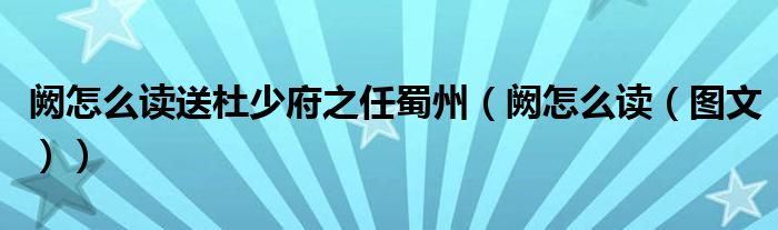 导读 大家好,精选小综来为大家解答以上的问题。阙怎么读送杜少府之任蜀州,阙怎么读,图文很多人还不知道,现在让我们一起来看看吧!查看视频本
