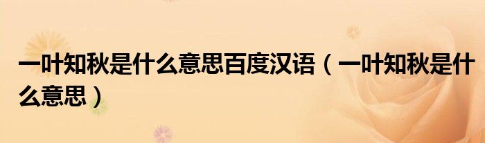 导读 大家好,精选小综来为大家解答以上的问题。一叶知秋是什么意思百度汉语,一叶知秋是什么意思很多人还不知道,现在让我们一起来看看吧!中国