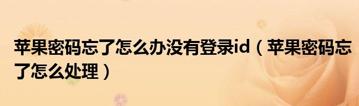 导读 大家好,精选小综来为大家解答以上的问题。苹果密码忘了怎么办没有登录id,苹果密码忘了怎么处理很多人还不知道,现在让我们一起来看看吧!