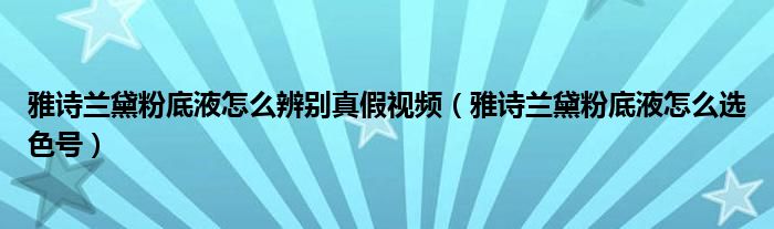 导读 大家好,精选小综来为大家解答以上的问题。雅诗兰黛粉底液怎么辨别真假视频,雅诗兰黛粉底液怎么选色号很多人还不知道,现在让我们一起来看