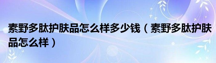 导读 大家好,精选小综来为大家解答以上的问题。素野多肽护肤品怎么样多少钱,素野多肽护肤品怎么样很多人还不知道,现在让我们一起来看看吧!野