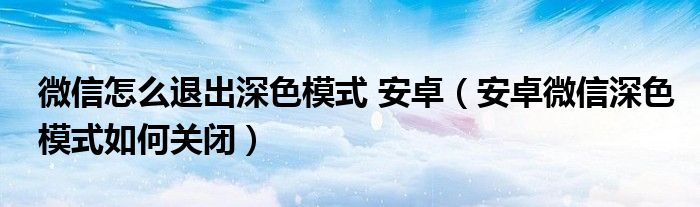 导读 大家好,精选小综来为大家解答以上的问题。微信怎么退出深色模式 安卓,安卓微信深色模式如何关闭很多人还不知道,现在让我们一起来看看吧