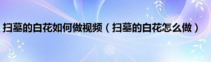 大家好,精选小综来为大家解答以上的问题。扫墓的白花如何做视频,扫墓的白花怎么做很多人还不知道,现在让我们一起来看看吧!