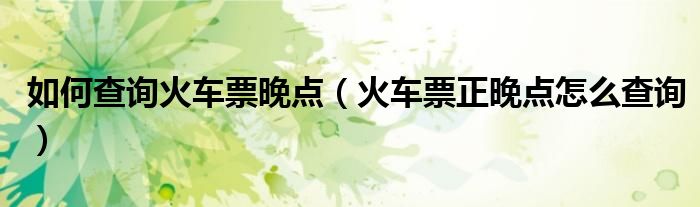 导读 大家好,精选小综来为大家解答以上的问题。如何查询火车票晚点,火车票正晚点怎么查询很多人还不知道,现在让我们一起来看看吧!坐火车怕迟