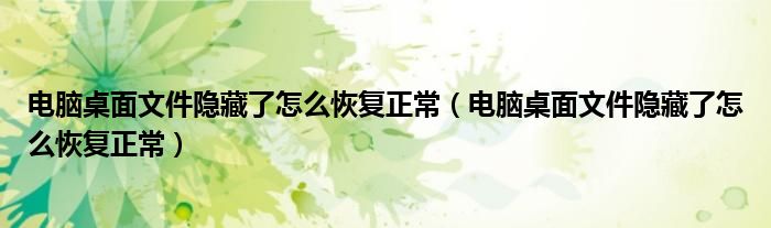 导读 大家好,精选小综来为大家解答以上的问题。电脑桌面文件隐藏了怎么恢复正常,电脑桌面文件隐藏了怎么恢复正常很多人还不知道,现在让我们一