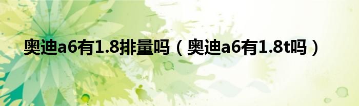 导读 大家好,精选小综来为大家解答以上的问题。奥迪a6有1 8排量吗,奥迪a6有1 8t吗很多人还不知道,现在让我们一起来看看吧!在生活中,奥迪A6