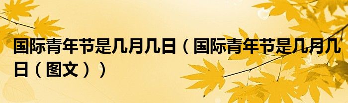 导读 大家好,精选小综来为大家解答以上的问题。国际青年节是几月几日,国际青年节是几月几日,图文很多人还不知道,现在让我们一起来看看吧!查