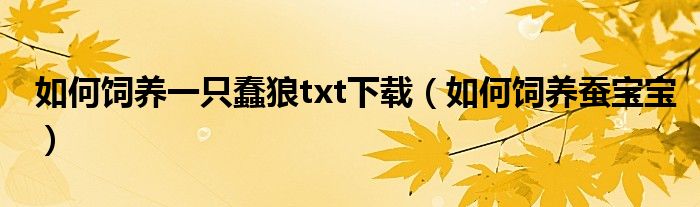 导读 大家好,精选小综来为大家解答以上的问题。如何饲养一只蠢狼txt下载,如何饲养蚕宝宝很多人还不知道,现在让我们一起来看看吧!作业又落在