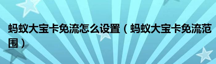 导读 大家好,精选小综来为大家解答以上的问题。蚂蚁大宝卡免流怎么设置,蚂蚁大宝卡免流范围很多人还不知道,现在让我们一起来看看吧!蚂蚁卡只