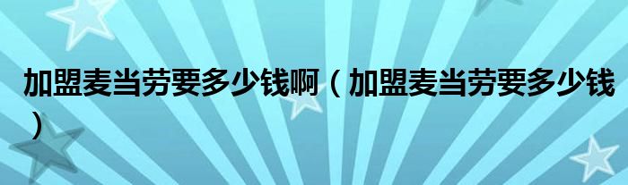 大家好,精选小综来为大家解答以上的问题。加盟麦当劳要多少钱啊,加盟麦当劳要多少钱很多人还不知道,现在让我们一起来看看吧!