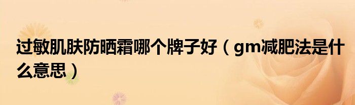 大家好,精选小综来为大家解答以上的问题。过敏肌肤防晒霜哪个牌子好,gm减肥法是什么意思很多人还不知道,现在让我们一起来看看吧!