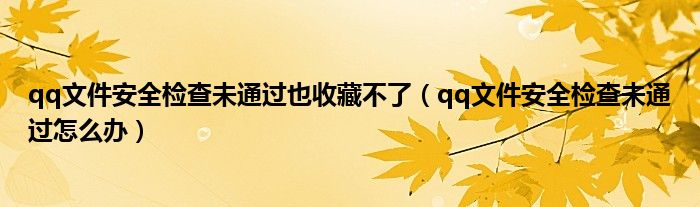 导读 大家好,精选小综来为大家解答以上的问题。qq文件安全检查未通过也收藏不了,qq文件安全检查未通过怎么办很多人还不知道,现在让我们一起来