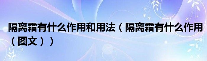 导读 大家好,精选小综来为大家解答以上的问题。隔离霜有什么作用和用法,隔离霜有什么作用,图文很多人还不知道,现在让我们一起来看看吧!查看