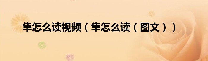 导读 大家好,精选小综来为大家解答以上的问题。隼怎么读视频,隼怎么读,图文很多人还不知道,现在让我们一起来看看吧!查看视频本文到此结束,