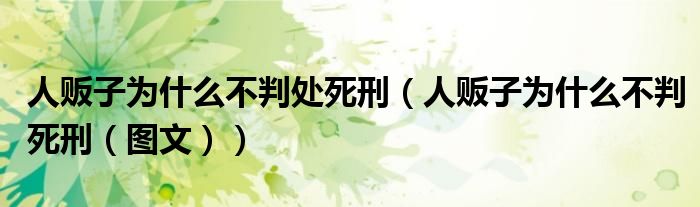 导读 大家好,精选小综来为大家解答以上的问题。人贩子为什么不判处死刑,人贩子为什么不判死刑,图文很多人还不知道,现在让我们一起来看看吧!