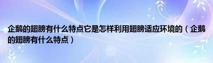 导读 大家好,精选小综来为大家解答以上的问题。企鹅的翅膀有什么特点它是怎样利用翅膀适应环境的,企鹅的翅膀有什么特点很多人还不知道,现在让