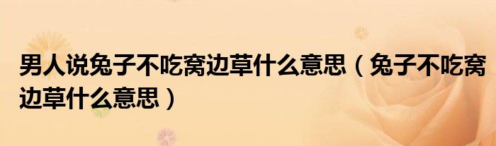导读 大家好,精选小综来为大家解答以上的问题。男人说兔子不吃窝边草什么意思,兔子不吃窝边草什么意思很多人还不知道,现在让我们一起来看看吧