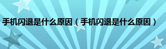 大家好,精选小综来为大家解答以上的问题。手机闪退是什么原因,手机闪退是什么原因很多人还不知道,现在让我们一起来看看吧!