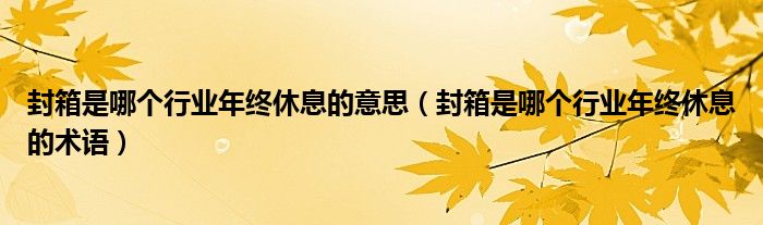 导读 大家好,精选小综来为大家解答以上的问题。封箱是哪个行业年终休息的意思,封箱是哪个行业年终休息的术语很多人还不知道,现在让我们一起来