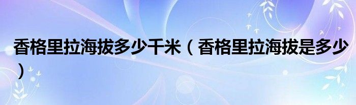 大家好,精选小综来为大家解答以上的问题。香格里拉海拔多少千米,香格里拉海拔是多少很多人还不知道,现在让我们一起来看看吧!