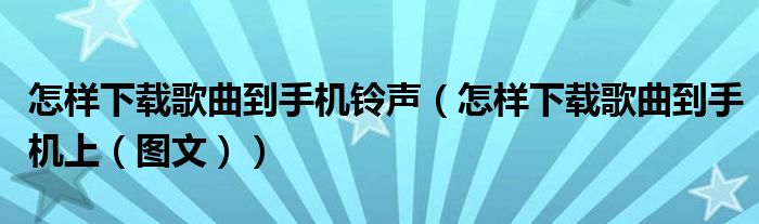 导读 大家好,精选小综来为大家解答以上的问题。怎样下载歌曲到手机铃声,怎样下载歌曲到手机上,图文很多人还不知道,现在让我们一起来看看吧!