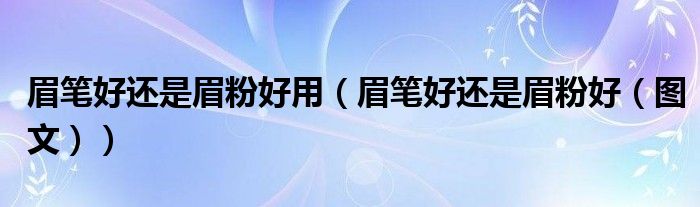 导读 大家好,精选小综来为大家解答以上的问题。眉笔好还是眉粉好用,眉笔好还是眉粉好,图文很多人还不知道,现在让我们一起来看看吧!查看视频