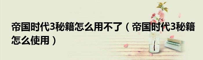 导读 大家好,精选小综来为大家解答以上的问题。帝国时代3秘籍怎么用不了,帝国时代3秘籍怎么使用很多人还不知道,现在让我们一起来看看吧!帝国