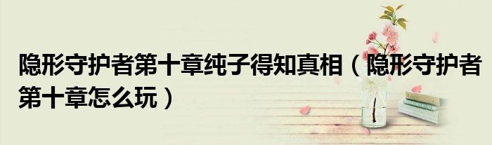 导读 大家好,精选小综来为大家解答以上的问题。隐形守护者第十章纯子得知真相,隐形守护者第十章怎么玩很多人还不知道,现在让我们一起来看看吧