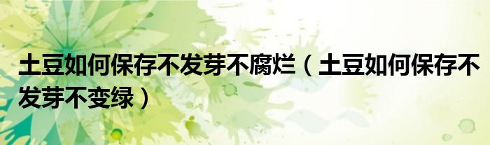 导读 大家好,精选小综来为大家解答以上的问题。土豆如何保存不发芽不腐烂,土豆如何保存不发芽不变绿很多人还不知道,现在让我们一起来看看吧!