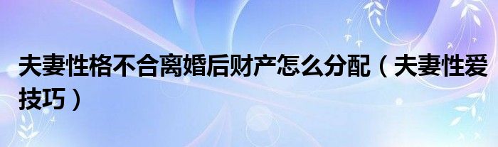 导读 大家好,精选小综来为大家解答以上的问题。夫妻性格不合离婚后财产怎么分配,夫妻性爱技巧很多人还不知道,现在让我们一起来看看吧!夫妻性