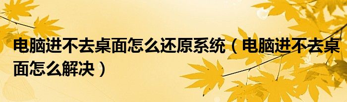 导读 大家好,精选小综来为大家解答以上的问题。电脑进不去桌面怎么还原系统,电脑进不去桌面怎么解决很多人还不知道,现在让我们一起来看看吧!