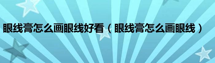 大家好,精选小综来为大家解答以上的问题。眼线膏怎么画眼线好看,眼线膏怎么画眼线很多人还不知道,现在让我们一起来看看吧!