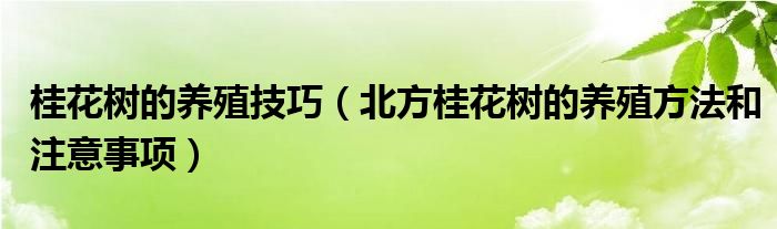 导读 大家好,精选小综来为大家解答以上的问题。桂花树的养殖技巧,北方桂花树的养殖方法和注意事项很多人还不知道,现在让我们一起来看看吧!养