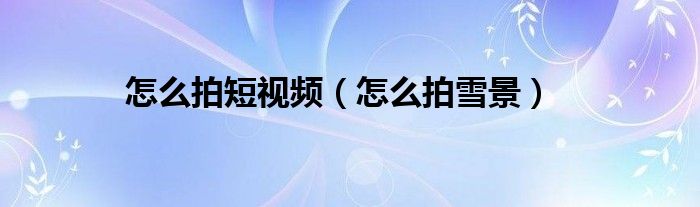 大家好,精选小综来为大家解答以上的问题。怎么拍短视频,怎么拍雪景很多人还不知道,现在让我们一起来看看吧!