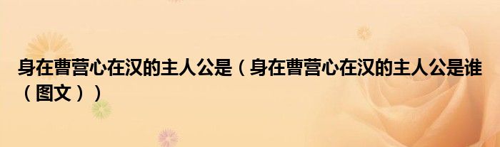 导读 大家好,精选小综来为大家解答以上的问题。身在曹营心在汉的主人公是,身在曹营心在汉的主人公是谁,图文很多人还不知道,现在让我们一起来