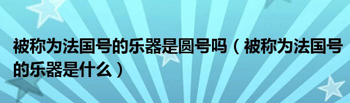 导读 大家好,精选小综来为大家解答以上的问题。被称为法国号的乐器是圆号吗,被称为法国号的乐器是什么很多人还不知道,现在让我们一起来看看吧