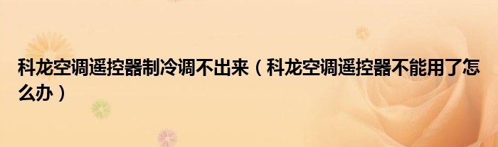 导读 大家好,精选小综来为大家解答以上的问题。科龙空调遥控器制冷调不出来,科龙空调遥控器不能用了怎么办很多人还不知道,现在让我们一起来看