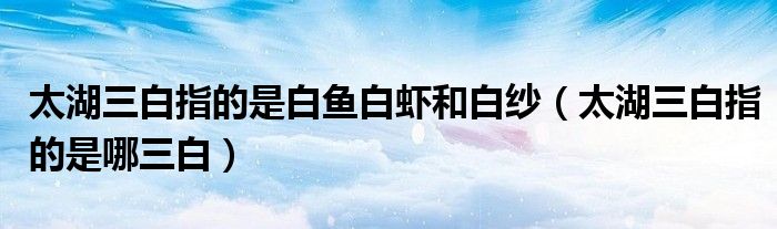 导读 大家好,精选小综来为大家解答以上的问题。太湖三白指的是白鱼白虾和白纱,太湖三白指的是哪三白很多人还不知道,现在让我们一起来看看吧!