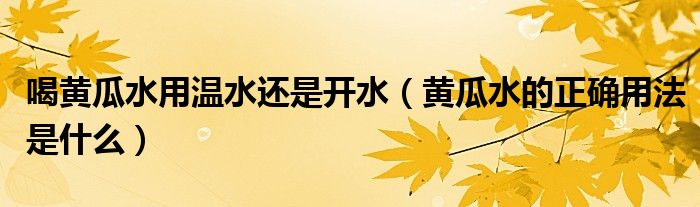 导读 大家好,精选小综来为大家解答以上的问题。喝黄瓜水用温水还是开水,黄瓜水的正确用法是什么很多人还不知道,现在让我们一起来看看吧!在日