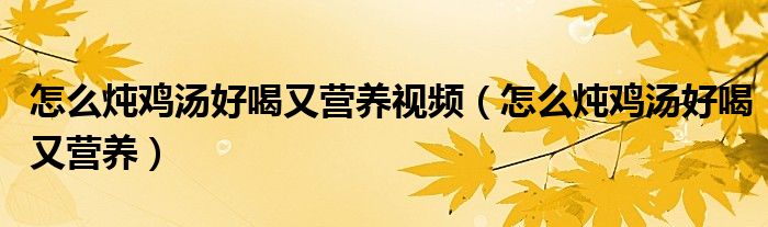 导读 大家好,精选小综来为大家解答以上的问题。怎么炖鸡汤好喝又营养视频,怎么炖鸡汤好喝又营养很多人还不知道,现在让我们一起来看看吧!鸡汤