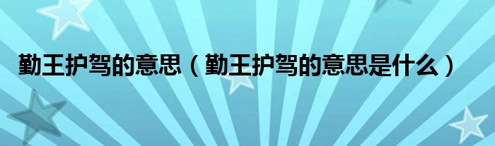 导读 大家好,精选小综来为大家解答以上的问题。勤王护驾的意思,勤王护驾的意思是什么很多人还不知道,现在让我们一起来看看吧!勤王护驾,就是