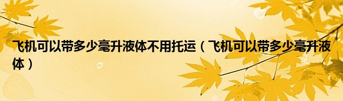 导读 大家好,精选小综来为大家解答以上的问题。飞机可以带多少毫升液体不用托运,飞机可以带多少毫升液体很多人还不知道,现在让我们一起来看看