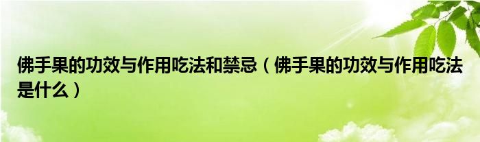 导读 大家好,精选小综来为大家解答以上的问题。佛手果的功效与作用吃法和禁忌,佛手果的功效与作用吃法是什么很多人还不知道,现在让我们一起来